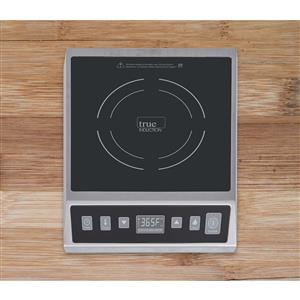 The Commercial True Induction series offers the same great portability and efficiency as our home-use single induction cookers, but with the control and power of a commercial range. This 1750-watt single burner heats water and pans extremely fast (2 cups of water will boil in one minute) and, most importantly, provides stable temperature control. Temperatures can still vary from the display depending on the cookware used and how well it distributes heat; however, during testing, the active-to-inactive temperature range varied by approximately 10 degrees. Induction heating maintains temperature by energizing the induction coils to reach the desired heat level, then turning off until the temperature begins to drop. The coils then energize again at varying wattage levels, depending on the cooktop setting. Lower-wattage cooktops have a smaller range for moderating temperature controls. Additional features include adjustable legs for height preference, bolt holes to secure the unit to a wall, and 15 different heating levels. Often a sous chef’s best friend, professionals appreciate the benefits of having an additional cooktop to increase productivity. The commercial cooktop comes with a standard 120V plug commonly found in most restaurant and commercial kitchens. * Terms and Conditions Apply Specifications How does it work? Induction cooking utilizes magnetic based technology to transfer heat from the cooking unit directly to the pot. Learn more about the technology by visiting TrueInduction.com.