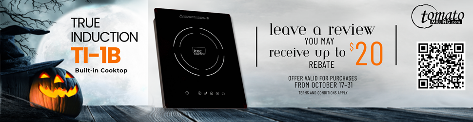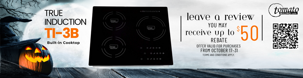 This True Induction cooking package features a 1600 Watt single burner cooktop and the 10-piece gourmet cookware set.